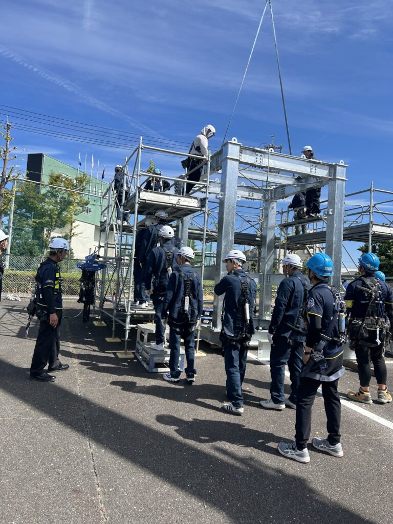 毎年4月の第1木曜日に行われる新人教育のひとつ、「足場の組立て等作業従事者」の特別教育を実施しました。入社したてのフレッシャーズたちが、6時間のカリキュラムを修了しました!