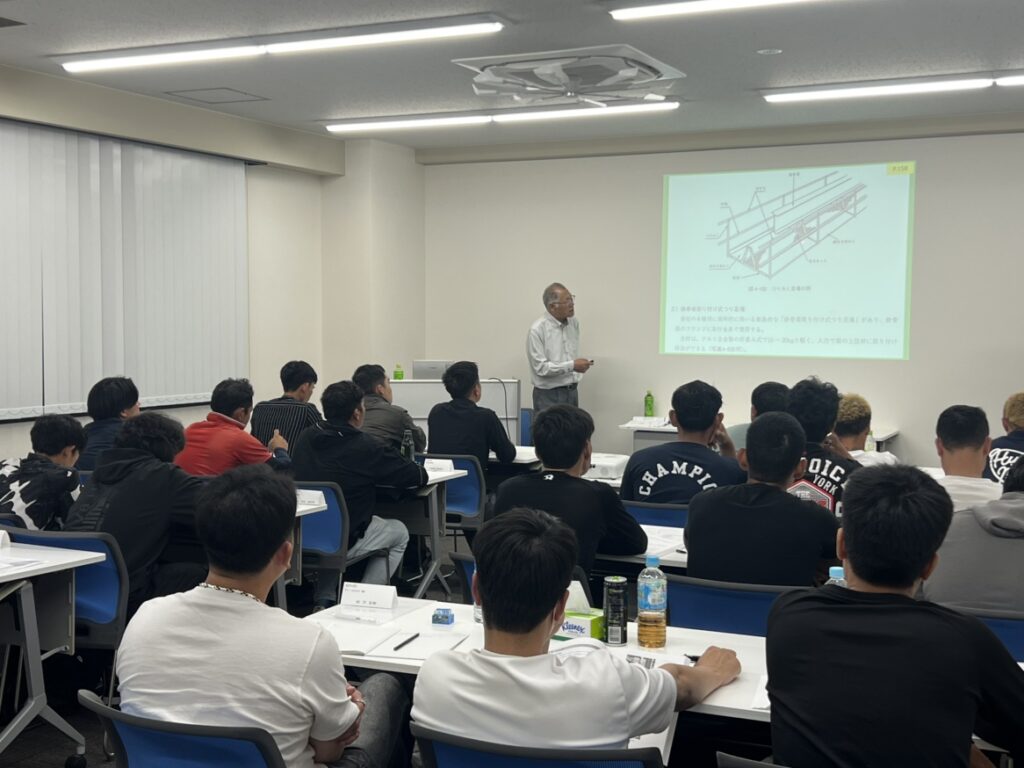 こちらはベテラン職長様、更新講習です。変わりゆく法令や技術の最新トピックを学びつつ知識の再確認!