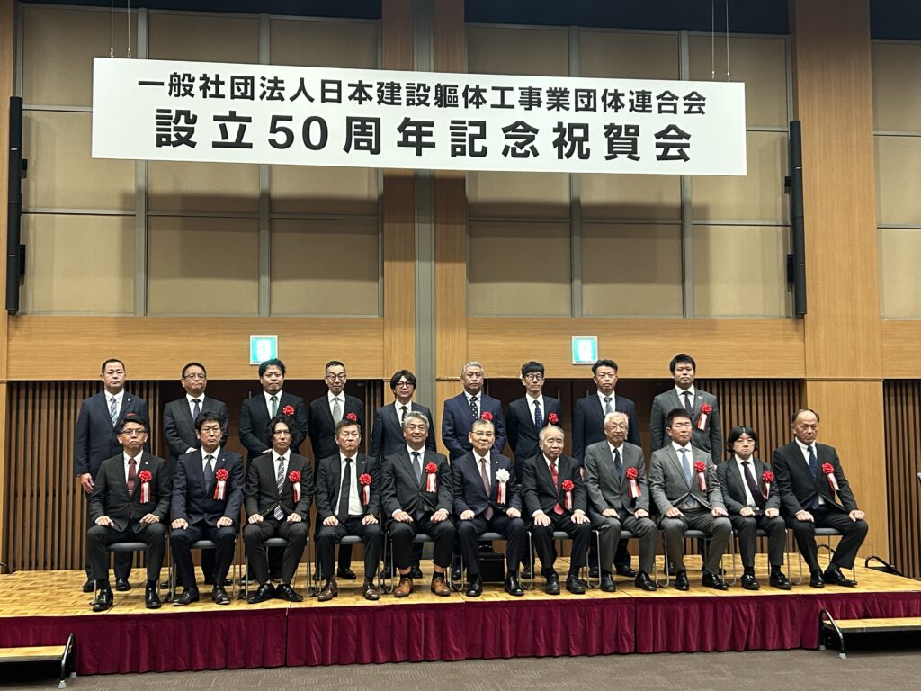 全国組織である日本躯体の創立50周年記念式典・祝賀会が東京・JPタワーにて盛大に開催されました。傘下である東海躯体の理事と功績のあった会員企業様から選ばれた方が出席し、表彰式で日本躯体大木会長より会長賞を授与されました。