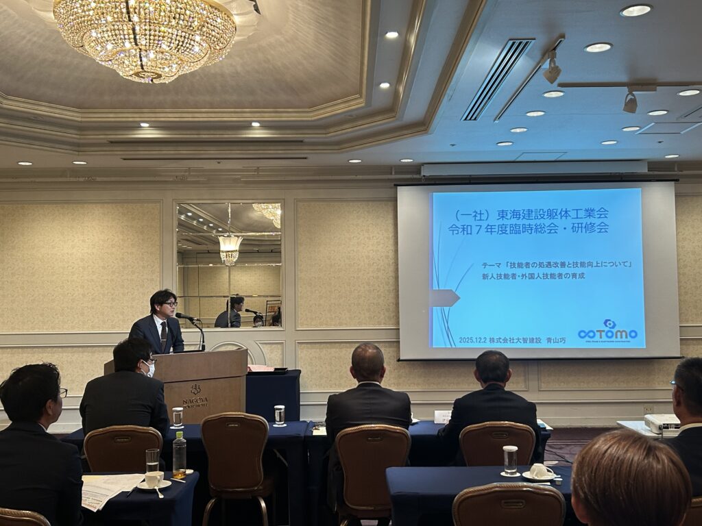 東海躯体の正会員19社ご出席いただきました。今年の事業報告や、来年の活動へ向けて種々審議されました。またこの日は研修会として、JACから講師をお招きし、特定技能1号から2号への移行ポイントについても研修会を開きました。